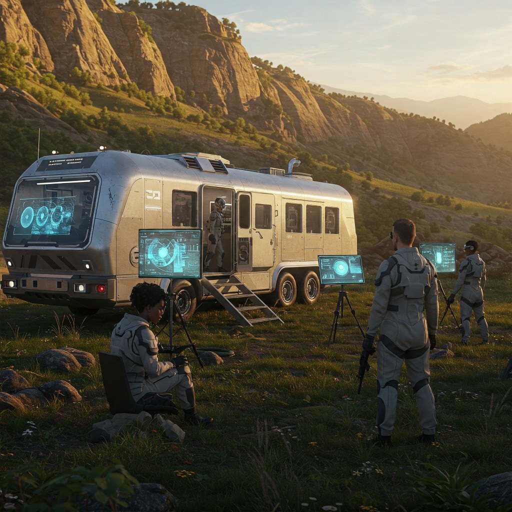 Dos clics antes de llegar a la base de formación, el transporte se paró de nuevo. Esta vez en un valle donde esperaba un centro de acondicionamiento móvil. Nos hicieron pasar un reconocimiento médico tras el que nos obligaron a ponernos nuestros trajes de inmersión. Nos quitaron nuestros anillos y se nos implantó un chip de comunicación y seguimiento. Tardé casi una Dera en quitármelo, aunque desde la misión Umbral de Ébano, ya no emitía.