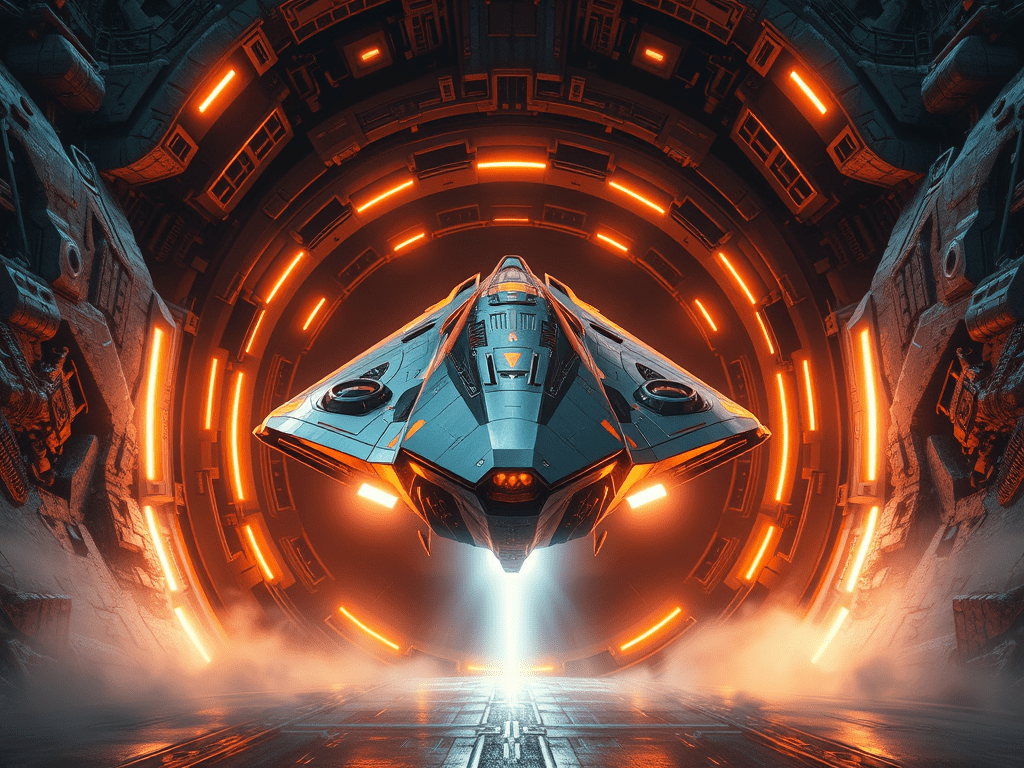 Parecía un discurso ensayado, volví a desconectar. Vi como la Nave llegaba a una enorme entrada. Como una boca gigante, nos tragó. Todo se volvió oscuro. Unas luces naranjas guiaron nuestra nave hasta una enorme su lugar en un inmenso hangar. Sentimos la nave posarse.